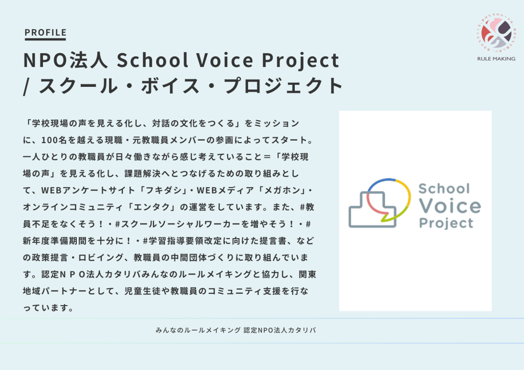 子どもも大人も幸せな学校へ。「声」を真ん中に行動を起こすーー関東エリア地域パートナー・NPO法人 School Voice Project