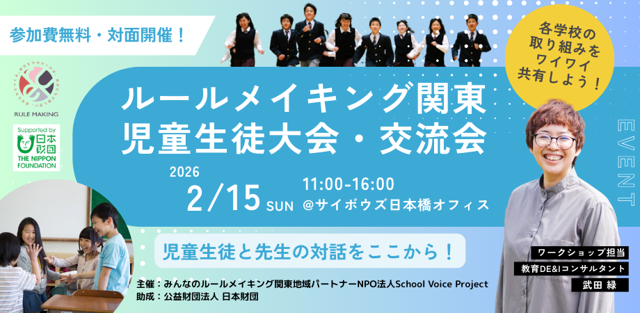 最後には、2026年2月15日(日)に開催されるルールメイキング関東地域児童生徒大会&交流会の告知もしていただきました!